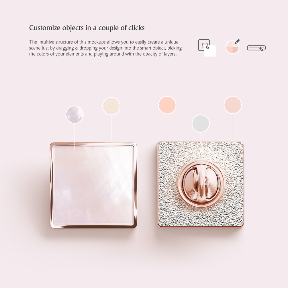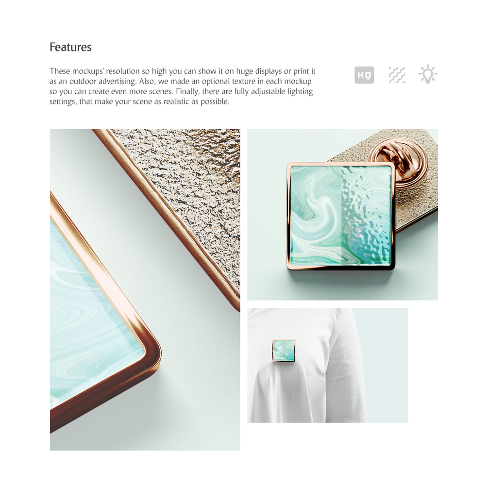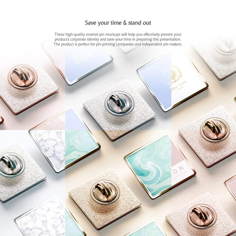 Square Enamel Pin Mockups Set