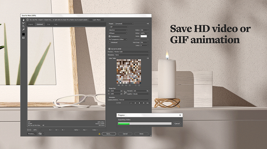 Watch an exported gif animations: