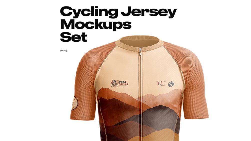 - 4 psd with cycling jersey mockups with 3d object (back side, back, front and side view)