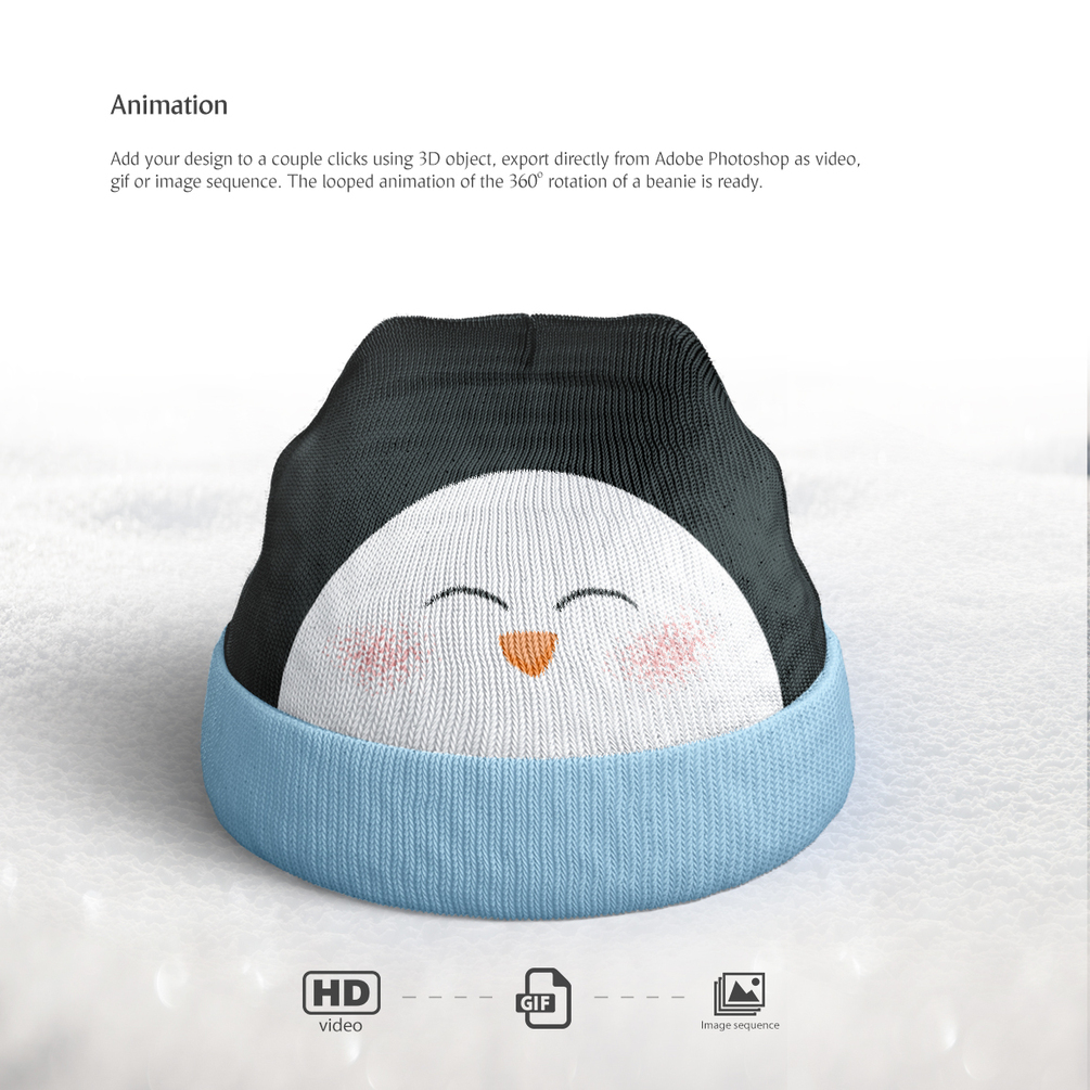 • knitted beanie rotation animated psd;