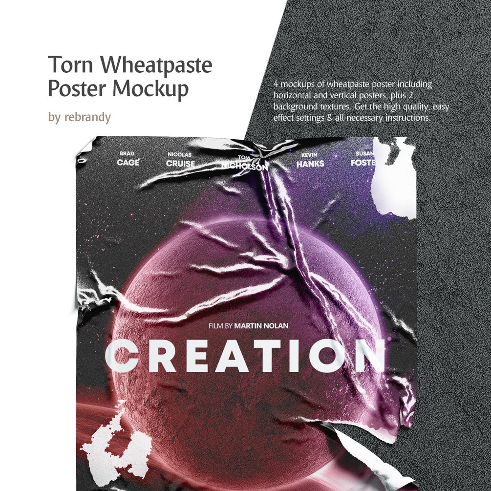 - 2 psd with torn wheatpaste poster (horizontal and vertical);
